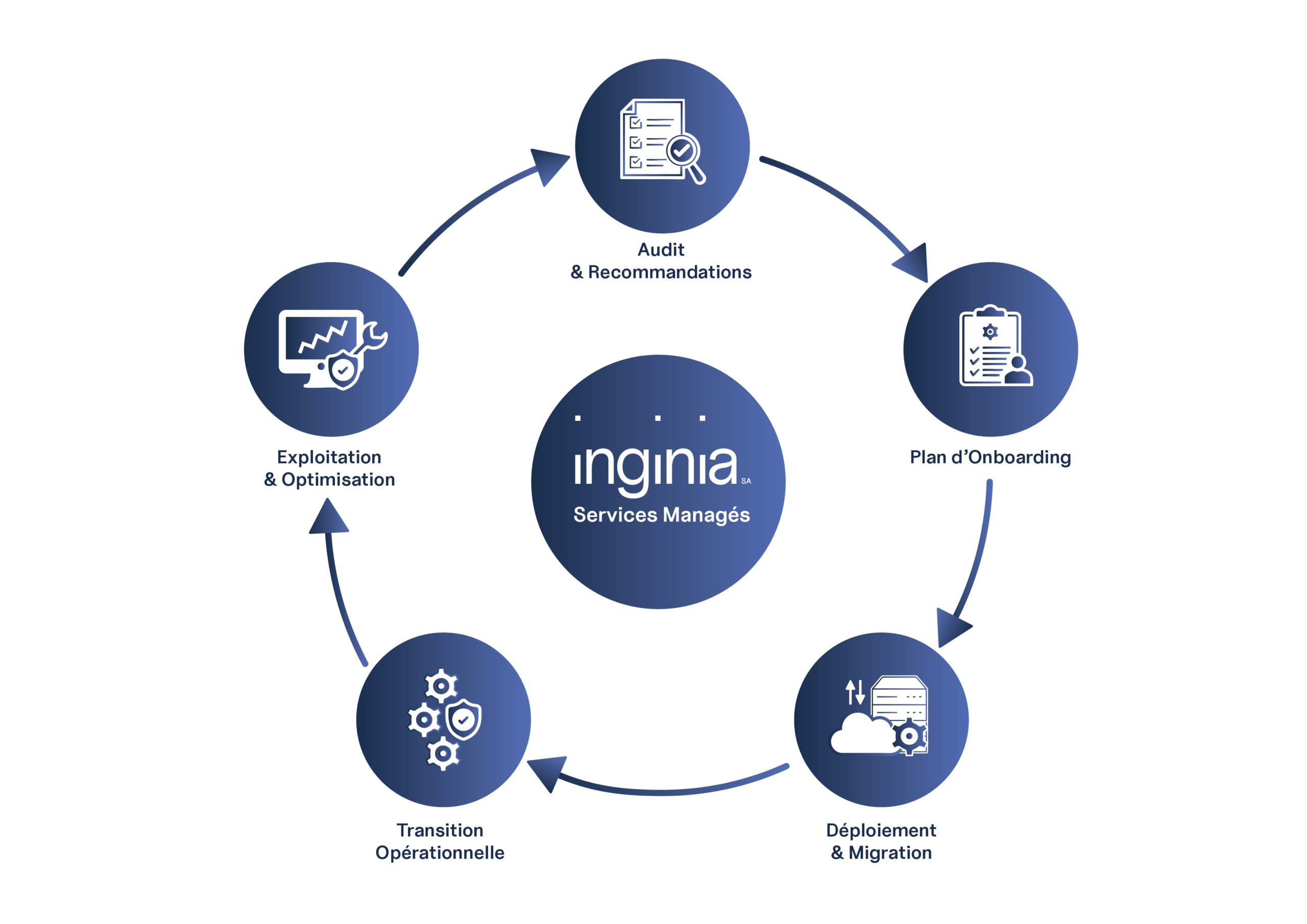 Inginia ne se limite pas à fournir des technologies : nous construisons des infrastructures durables, sécurisées et parfaitement maîtrisées. Nous agissons en véritable partenaire, impliqué dans la réussite et la continuité des activités de nos clients.